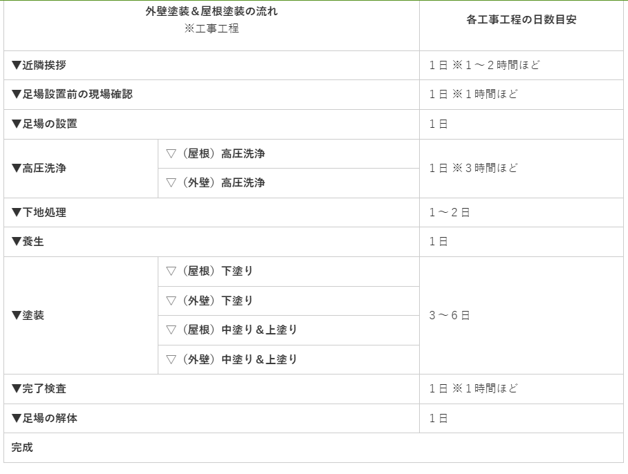 ※付帯部(雨樋・軒天等)などの塗装をする場合は、上記+αの日数がかかります。