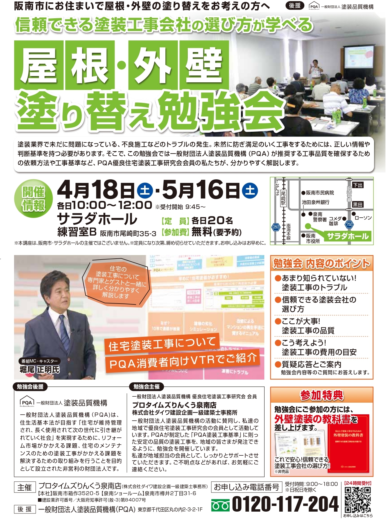 泉南市・阪南市・岬町 地域密着の塗装会社プロタイムズりんくう泉南店です。