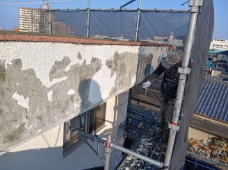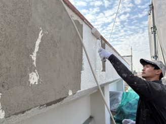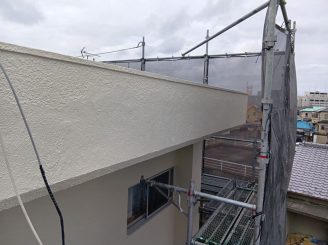 上塗り1回目【塗料】アステックペイント シリコンREVO1000-IR【色】ブロークンホワイト